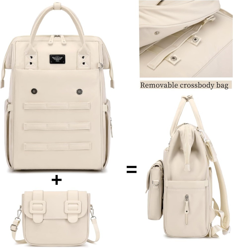 Diaper Bag Backpack, Large Capacity, Water-Resistant, Backpack and Messenger Bag Set Can be Combined Disassembled (Beige)
